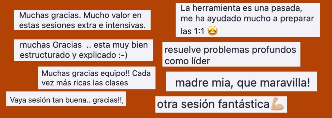 Además, te mostraremos cómo usar nuestra IA para mejorar la eficiencia y claridad en la comunicación con tu equipo: GPT personalizado entrenado con el método LiderAMás, podrás: Preparar conversaciones 1:1, reuniones grupales, feedback correctivo o conversaciones sensibles… y Hacer role play en tiempo real para entrenarte y sentirte seguro antes de hablar con tu equipo. Una herramienta práctica y disponible 24/7 para que liderar deje de ser improvisado y se convierta en eficaz.